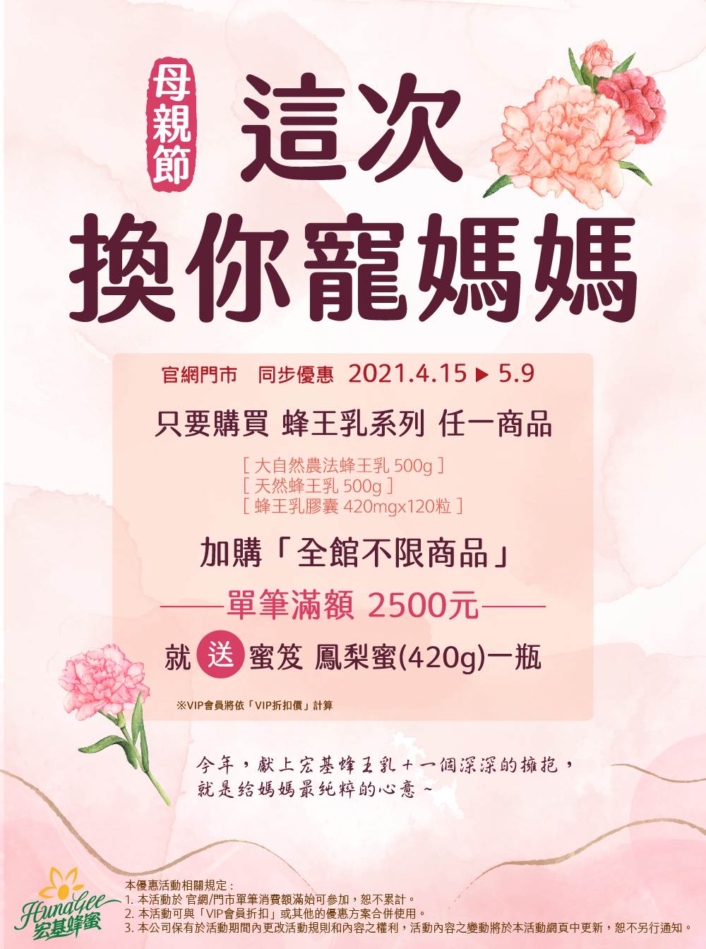歡慶母親節|送禮首選蜂王乳,滿2500送鳳梨蜜
