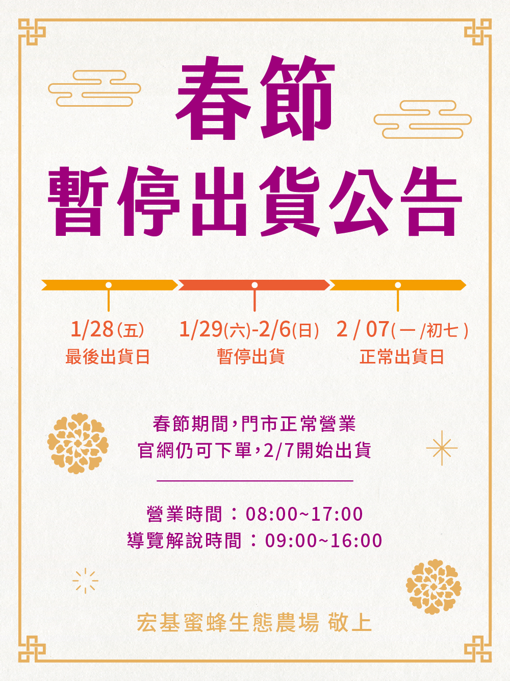 2/7(一/初七)恢復出貨 | 春節訂單統一出貨