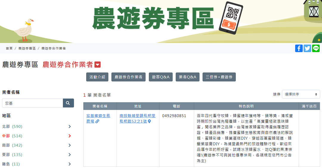 6. 為鼓勵跨區域旅遊,設有異地消費機制,僅限於您的居住所在地(鄉鎮市區)以外之「農遊券」合作業者使用。